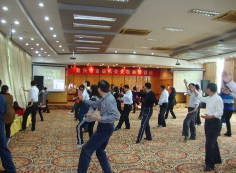 (包萍 李力 報道)2012年4月24日至25日,泰興體育局會同泰興機關工委舉辦了為期兩天的太極拳培訓班,來自泰興市直機關、企事業單位和鄉鎮的50多名干部職工參加了培訓。