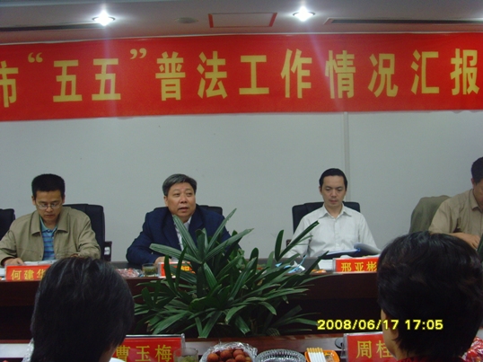 (2008年6月17日) 據中央、省和泰州市的統一部署,我市在認真總結前四個五年普法教育的基礎上,圍繞“五五”普法目標任務,深入貫徹《法治江蘇建設綱要》,全市的“五五”普法工作開局良好,運行有序,進展順利,初步完成了由過渡銜接、啟動準備轉入全面實施的階段性工作任務。2006年,我市普法辦被省人事廳、司法廳表彰為先進集體。現將具體工作情況匯報如下: 在“四五”結束,“五五”普法即將啟動之際,我市專題召開法制宣傳教育領導小組全體成員會議,學習貫徹上級法制宣傳教育工作會議精神,討論全市“五五”普法工作的總體思路,研究部署啟動階段的各項基礎性準備工作,主要抓了三件事: 一是制定規劃,保障“五五”普法工作的有序運行。為使規劃符合我市實際,規劃草案出臺前,我們進行了深入調研,向社會各界發放 “五五”普法問卷調查表1萬5千多份。同時,先后組織由人大代表、政協委員,機關部門、鄉鎮、企業、學校等企事業單位負責人和職工代表參加的不同層面座談會,充分吸收來自社會各方面的意見,并將反饋上來的意見和建議進行分類梳理,在此基礎上,結合省、泰州市的宏觀規劃制定出《泰興市法制宣傳教育工作第五個五年規劃(討論稿)》,討論稿經市領導小組各成員單位集中進行修改后,報經市政府常務會研究,最終規劃的正式文本以市委、市政府聯合批轉的形式下發,市人大形成決議下發全市。我市制定的“五五”規劃,既體現了普法教育工作的連續性,又體現了與時俱進的精神,從基層反映的情況看,規劃具有較強的針對性和可操作性。各鄉鎮和市級機關各部門,依據五年總體規劃和年度工作意見,結合本地、本部門實際,都相應地制定了規劃和年度工作計劃。同時,依據《江蘇省法制宣傳教育工作條例》,相應地制定完善了一系列配套的工作制度,為新一輪普法工作的順利實施提供了基礎保障。 二是抓過渡銜接,全面部署新一輪五年普法和法治實踐任務。為有效地做好“四五”與“五五”普法的接茬銜接,06年,我市組織召開了普法工作有史以來規格最高的全市“四五”普法總結表彰暨“五五”普法動員大會,市委常委及四套班子主要負責人參加會議。會上市委書記專題作了重要講話,市委副書記、市長高亞梓同志作了《全面開展新一輪五年普法教育 努力實現創建法制江蘇合格縣市目標》的工作報告。會議表彰了21家“四五”普法先進單位,44名先進個人,全面系統地部署了全市第五個五年普法的工作任務,明確提出了爭創全國“五五”普法工作先進市的奮斗目標。會上市國土局、泰興鎮、黃橋中學、泰興石油機械有限公司等四家單位作了交流和表態發言。高規格的動員大會,充分反映了市委、市政府對普法工作的高度重視。 三是抓宣傳發動,著力宣傳“四五”普法成果和“五五”普法規劃。動員大會結束后,我們把“四五”普法成果以圖文并茂的形式,制成三十塊展板,在全市巡展,廣泛宣傳“四五”普法取得的經驗和成效。同時,利用簡報、櫥窗、文藝演出、廣播、電視等各種載體廣泛開展宣傳發動,形成強烈的輿論聲勢,為弘揚法治精神,深化法治實踐,構建和諧泰興積極營造良好的人文法制環境。