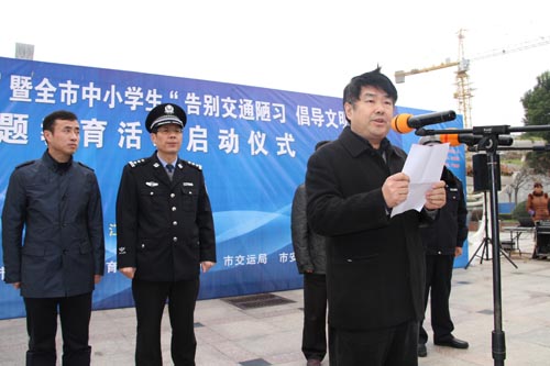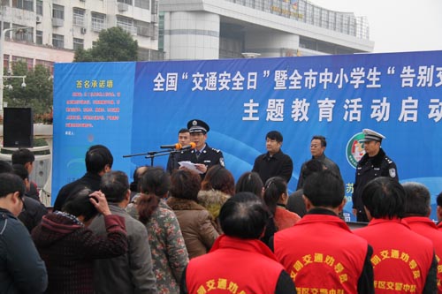 活動(dòng)首先由市公安局黨委委員、副局長(zhǎng)蔡林發(fā)表熱情揚(yáng)溢的致辭;駕駛員代表、校長(zhǎng)代表作表態(tài)發(fā)言;鼓樓中心小學(xué)的學(xué)生率先向社會(huì)發(fā)出倡議:告別交通陋習(xí),從我做起;市委宣傳部副部長(zhǎng)、市文明辦主任張余華講話并宣布啟動(dòng)儀式正式開始。所有參會(huì)人員紛紛在“告別交通陋習(xí),從我做起”巨幅背景墻上簽名承諾,現(xiàn)場(chǎng)發(fā)放交通安全宣傳品和122宣傳畫冊(cè)。