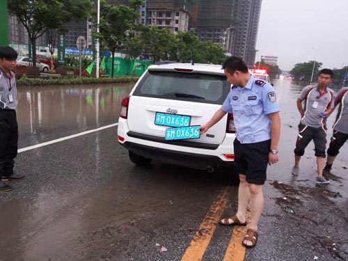 雨勢(shì)已轉(zhuǎn)弱,但陣雨不斷,路面還有很多積水以及數(shù)厘米厚的淤泥。當(dāng)看到一輛輛熄火的從水中推出的汽車,當(dāng)看到一排排警示樁在馬路上擺出,還有一個(gè)個(gè)身著濕噠噠的警服在雨中矯健的身影,所有這些無不在告訴我們所有人:風(fēng)在、雨在、交警蜀黍也在。 |