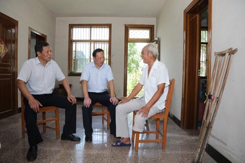 7月29日上午,副市長(zhǎng)、局黨委書記、局長(zhǎng)李雙山到根思鄉(xiāng)鞠顧村走訪慰問了該村老復(fù)員軍人楊相國(guó)(83歲、抗美援朝老復(fù)員軍人)、軍人烈屬顧展女(96歲,因公犧牲軍人家屬)、現(xiàn)役軍人親屬鞠俊才(現(xiàn)役軍人鞠冬父親,家庭貧困),為他們送去節(jié)日的祝福和慰問金,感謝他們及其親屬為黨和國(guó)家作出的貢獻(xiàn),希望老同志們繼續(xù)發(fā)揚(yáng)軍人的優(yōu)良作風(fēng),為社會(huì)事業(yè)發(fā)展獻(xiàn)力獻(xiàn)策,并叮囑有關(guān)部門多關(guān)心他們的日常生活,盡量幫助他們解決生活中的實(shí)際困難。