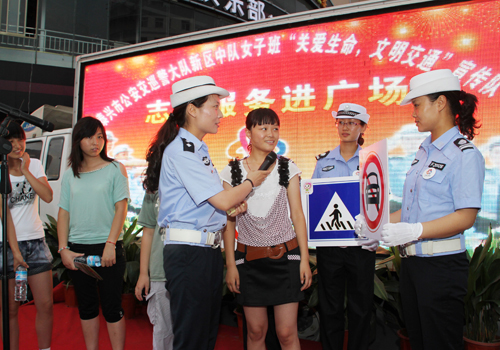 7月30日下午,市公安系統婦委會按照市婦聯的統一部署,結合文明交通行動計劃實施要求,在市區鼓樓廣場開展了以“我是巾幗志愿者·服務和諧我先行”為主題的巾幗志愿者服務日活動。