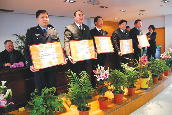 2011年,市法院法警大隊(duì)被省高級人民法院評為全省法院司法警察“標(biāo)兵警隊(duì)”,至此大隊(duì)已連續(xù)七年被市法院評為“先進(jìn)集體”,被泰州中院記“集體三等功”一次,兩次被省高院評定為司法警察工作“示范單位”。這一切榮譽(yù)的取得有一個(gè)人功不可沒,這就是他們的標(biāo)兵隊(duì)長——侯明泉。2011年侯明泉被省高院評為“司法警察標(biāo)兵”。近年來在省高院組織的各類培訓(xùn)、專項(xiàng)技能比賽中他多次被評為“優(yōu)秀學(xué)員”、“先進(jìn)個(gè)人”,并被聘任為全省優(yōu)秀教練員,榮立個(gè)人“二等功”一次。 “訓(xùn)練向我看齊” 標(biāo)兵的榮譽(yù)談何容易,標(biāo)兵的團(tuán)隊(duì)又是如何煉成的呢?那還得從他們的大隊(duì)長說起。侯明泉,1962年出生,在部隊(duì)摸爬滾打15年,歷任排長、連長、特種營副營長,1996年憑借過硬的軍事素質(zhì)轉(zhuǎn)業(yè)到市法院司法警察大隊(duì)。 初到法警大隊(duì)任職,侯明泉就被推薦參加了泰州中院組織的手槍射擊選拔賽,以第一名的成績代表泰州中院參加全省法院司法警察手槍射擊比賽,獲得了個(gè)人第三名的好成績。侯明泉在部隊(duì)當(dāng)班長時(shí),步兵班進(jìn)攻戰(zhàn)斗訓(xùn)練課目曾參加過多次比武,獲得過集團(tuán)軍第一名、濟(jì)南軍區(qū)第二名。28歲那年他由步兵連長改任防爆團(tuán)特種營特一連又稱濟(jì)南軍區(qū)第一連的連長,又先后參加了全軍在北京組織的特種營連長集訓(xùn)和軍區(qū)組織的特種營連長偵察集訓(xùn),訓(xùn)練從擒拿格斗基本功開始,強(qiáng)度大、標(biāo)準(zhǔn)高,他渾身上下幾乎沒有一處未受過傷,艱苦的訓(xùn)練磨練了他過硬的技能和堅(jiān)韌不拔的意志。在訓(xùn)練和工作期間,他先后五次榮立個(gè)人三等功。 2002年侯明泉任法警大隊(duì)長,刻苦的軍事訓(xùn)練伴他一路走來。作為主抓訓(xùn)練的大隊(duì)領(lǐng)導(dǎo)和教練員,他的口號是“訓(xùn)練向我看齊”。警隊(duì)的主要訓(xùn)練科目他都堅(jiān)持親自任教,親自示范。打鐵先得自身硬。2009年,省高院組織了全省法院司法警察閱警暨業(yè)務(wù)技能演練,他全程參加了泰州中院隊(duì)列方隊(duì)的訓(xùn)練,任輔助教練,多次擔(dān)任示范動(dòng)作,同時(shí)還是網(wǎng)槍射擊方隊(duì)的指揮與教練。2010年,全國法院司法警察崗位大練兵活動(dòng)展開后,省高院法警總隊(duì)舉辦了 “五會”教練員培訓(xùn)班,為了適應(yīng)新時(shí)期司法警察訓(xùn)練工作的需要,侯明泉又親自參訓(xùn)。作為唯一一名基層法院法警大隊(duì)大隊(duì)長,又是年齡最大的同志,他和大伙一道,六點(diǎn)起床背理論,七點(diǎn)出早操,訓(xùn)練場上還主動(dòng)給年輕的同志做示范。侯明泉在部隊(duì)時(shí)落下了關(guān)節(jié)炎的毛病。這次訓(xùn)練,一站就是一天,他關(guān)節(jié)疼痛難忍,中午和晚上就用熱毛巾敷上半個(gè)小時(shí),咬著牙又精神抖擻地出現(xiàn)在訓(xùn)練場。最終在52名學(xué)員中他獲得第三名的好成績,被省高院表彰為“優(yōu)秀學(xué)員”,并被聘任為全省優(yōu)秀教練員。 在很多人看來,法警工作是一項(xiàng)簡單平凡的工作,無非就是押解人犯、警衛(wèi)法庭、協(xié)助執(zhí)行等,但隨著改革開放的逐步深化和市場經(jīng)濟(jì)的迅猛發(fā)展,司法警察在人民法院的地位和作用日益凸顯。司法警察工作已由過去單一的服務(wù)刑事審判擴(kuò)展到今天的保障和服務(wù)于民事、行政和執(zhí)行工作。沒有一支素質(zhì)精良的隊(duì)伍,要切實(shí)履行司法警察職責(zé)就會成為一句空話。面對繁重的警務(wù)保障任務(wù),加強(qiáng)訓(xùn)練刻不容緩,為此,侯明泉摸索出了一對一訓(xùn)練結(jié)幫對、室外與室內(nèi)訓(xùn)練相結(jié)合、堅(jiān)持每天最后一小時(shí)訓(xùn)練等方法,同時(shí)非常注重平日的點(diǎn)滴養(yǎng)成,要求法警在平時(shí)的值庭、人犯押解和安全檢查工作中每一個(gè)動(dòng)作都要按照訓(xùn)練場上的要求去做。冰凍三尺非一日之寒,在侯明泉的示范帶頭下,法警大隊(duì)鍛造出了一支拉得出、打得響的隊(duì)伍。2010年大隊(duì)在中院組織的專業(yè)比武考核中再創(chuàng)佳績,取得了手槍射擊團(tuán)體第一名、網(wǎng)槍射擊團(tuán)體第一名和團(tuán)體總分第一名的優(yōu)異成績,侯明泉再次榮獲手槍射擊個(gè)人第一名。