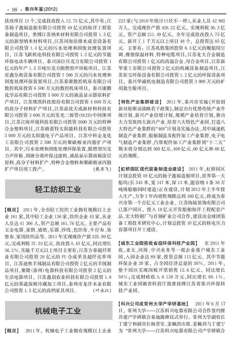 當(dāng)前位置:首頁 > 人文 > 概覽 > 泰興年鑒 > 2012泰興年鑒 > 正文