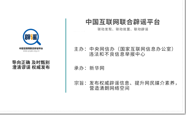 網(wǎng)絡(luò)辟謠是整個互聯(lián)網(wǎng)、乃至全社會公民的共同義務(wù),維護良好的網(wǎng)絡(luò)秩序人人有責(zé)。我們一直期待和更多的同行、更多有志于網(wǎng)絡(luò)辟謠工作的朋友,攜手共進,為中國互聯(lián)網(wǎng)事業(yè)打造更健康的成長環(huán)境。