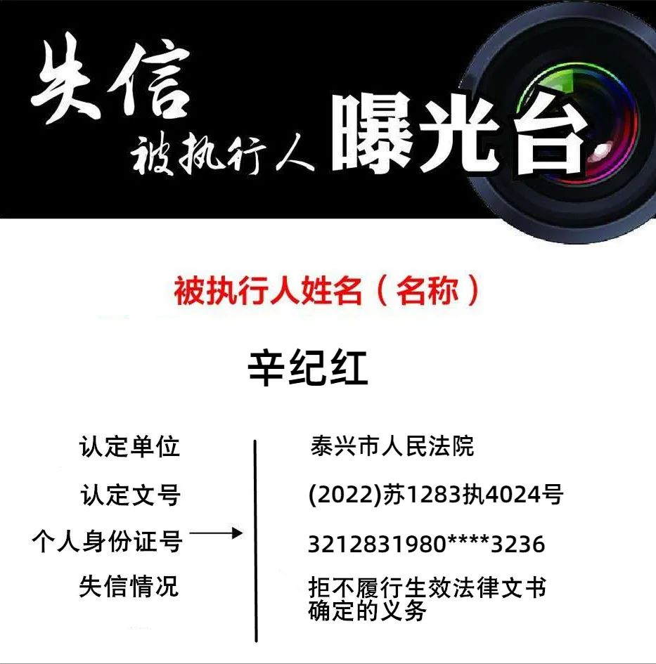 【曝光失信案例】曝光泰興這兩名失信被執行人!