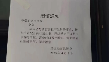 “君子之言,信而有征,故怨遠(yuǎn)于其身”,誠(chéng)信是中華民族的傳統(tǒng)美德,是做人做事的道德底線,也是社會(huì)運(yùn)行的必要條件。近日,泰興城區(qū)某酒店內(nèi)“瑞運(yùn)動(dòng)游泳健身”在門口張貼一“閉館通知”