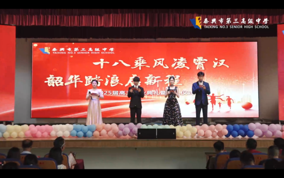 在泰興市第三高級中學,“十八乘風凌霄漢 韶華踏浪啟新程”2025屆高三畢業典禮暨成人儀式隆重舉辦,高三全體師生和家長代表濟濟一堂,共同見證這一難忘時刻,度過這段美好時光。走過成人門、戴起成年徽章,學子們吟誦青春誓言、譜寫追夢華章,美好的未來從這里起步。師者寄語承厚望,唯盼學子揚帆赴錦程;家長囑托助成長,唯盼孩子乘風抵彼岸。