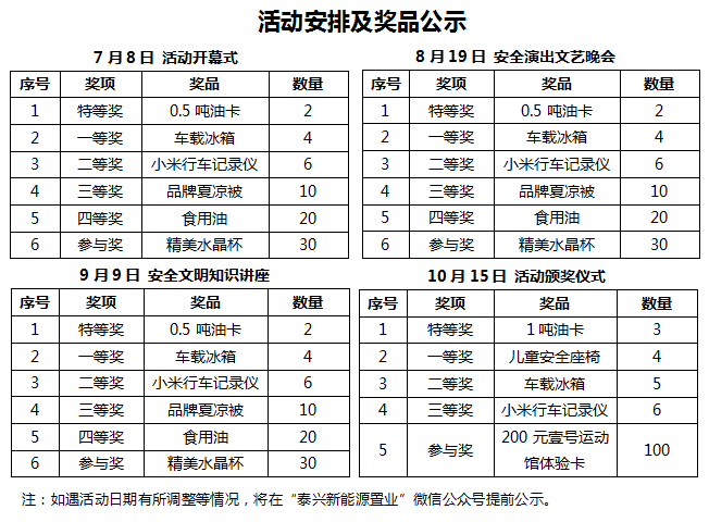 除了6噸汽油豪禮大放送,活動(dòng)期間還有其他好禮抽取,敬請(qǐng)持續(xù)關(guān)注“泰興新能源置業(yè)”微信公眾號(hào),活動(dòng)詳情搶先知。