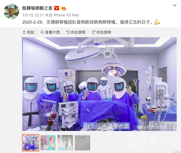 (省市專家為江蘇重型病例遠程會診 圖片來源:金山網(wǎng)) 全國首例新冠肺炎轉(zhuǎn)陰患者雙肺移植術(shù)在江蘇成功開展 2月29日,我囯著名肺移植專家陳靜瑜教授團隊,在無錫成功開展全國首例新冠肺炎轉(zhuǎn)陰患者雙肺移植手術(shù)。我蘇網(wǎng)了解到,該名患者為59歲的連云港籍工程師。3月9日,這位由無錫、連云港兩地接力救治的患者痊愈出院了。