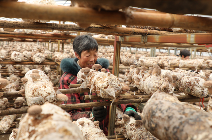 食用菌產(chǎn)業(yè)園里的香菇棒 近年來,全鎮(zhèn)果蔬種植面積達(dá)1萬余畝,種植農(nóng)戶達(dá)100余戶,實(shí)現(xiàn)300余名低收入群眾就地務(wù)工增收。以鎮(zhèn)現(xiàn)代農(nóng)業(yè)產(chǎn)業(yè)園區(qū)為龍頭,構(gòu)建食用菌產(chǎn)業(yè)園、設(shè)施化果蔬園、西瓜園、馬鈴薯園為支撐的“一區(qū)四園”發(fā)展框架,探索出“支部+公司+新型職業(yè)農(nóng)民+低收入農(nóng)戶”、“支部+勞務(wù)合作社”等黨建富民模式,帶動(dòng)村集體經(jīng)濟(jì)年增收70余萬元,吸納勞動(dòng)力500余人入園務(wù)工,人均年增收約1.2萬元以上。