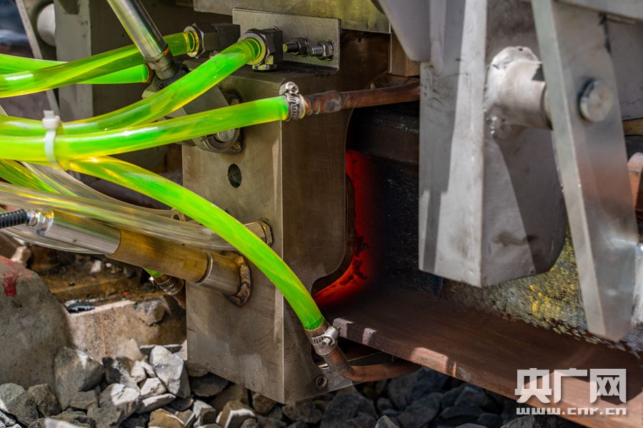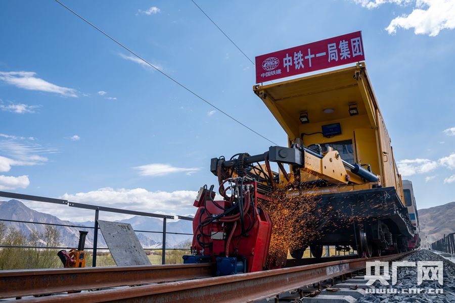 拉林鐵路首次焊軌現場(央廣網發 通訊員供圖) 據介紹,拉林鐵路無縫線路焊接采用了國內先進的移動閃光焊技術,為每個焊接好的焊頭建立起獨有的“信息檔案”,檔案還包括焊接接頭記錄表,可實現質量追溯。焊接好的鋼軌,將通過應力放散鎖定、大機精搗、線路精調等作業,最大限度提高行車面的平順度,在列車高速行駛過程中,保證旅客乘坐得平穩舒適。