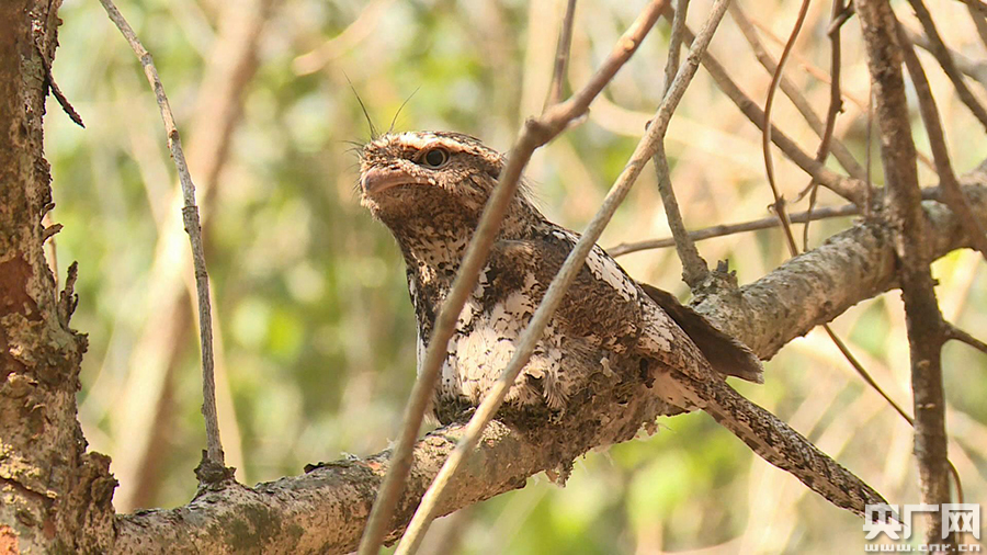 黑頂蟆口鴟(央廣網(wǎng)發(fā) 通訊員唐雯雯 攝) 央廣網(wǎng)普洱4月22日消息(記者李騰飛 通訊員何有剛 唐雯雯)這兩天,云南省普洱市的糯扎渡省級自然保護(hù)區(qū)內(nèi)拍攝到一種罕見鳥類——黑頂蟆口鴟。這種鳥在我國僅云南省內(nèi)有少量分布,而它身體羽毛顏色與周邊環(huán)境高度融合,其偽裝術(shù)堪稱鳥類一杰。 身體羽毛由黑褐色、棕色、白色等組成,頭頂羽毛則僅有幾根細(xì)細(xì)的黑線,眼前蹲在樹枝上的鳥兒就是黑頂蟆口鴟。只見它身體羽毛與周邊的樹枝、樹皮高度一致,如果不近距離仔細(xì)觀察很難發(fā)現(xiàn)。據(jù)云南糯扎渡省級自然保護(hù)區(qū)管護(hù)局工作人員介紹,眼前這只黑頂蟆口鴟其實并不是直接蹲在樹枝上,在它的下面是一個很小的鳥巢,之所以看見有人靠近也不飛走,一方面是因為它屬于夜行動物,而更重要的是它此時正在孵蛋。 云南糯扎渡省級自然保護(hù)區(qū)管護(hù)局辦公室副主任杜虹蓉介紹,它的繁殖季節(jié)基本上是從3月底,一般情況下是在4月到7月的這段時間,產(chǎn)蛋的顆數(shù)基本上是2顆,由雄鳥和雌鳥交替孵蛋。 黑頂蟆口鴟屬夜鷹目蟆口鴟科,主要棲息于2000米以下的亞熱帶低山丘陵地帶,屬于夜行動物,在我國僅分布于云南省。位于云南省普洱市境內(nèi)瀾滄江兩岸的糯扎渡省級自然保護(hù)區(qū),屬于熱帶和亞熱帶過渡氣候,保護(hù)區(qū)內(nèi)動植物資源十分豐富。2017年,保護(hù)區(qū)首次發(fā)現(xiàn)黑頂蟆口鴟的蹤跡,隨后,保護(hù)區(qū)管護(hù)局開始對這種鳥類進(jìn)行跟蹤監(jiān)測,今年已是連續(xù)三年在保護(hù)區(qū)的不同區(qū)域監(jiān)測到這種鳥類。針對今年發(fā)現(xiàn)的這個鳥巢,保護(hù)區(qū)管護(hù)局在附近安裝了對這種鳥的生活不會產(chǎn)生干擾的紅外相機,進(jìn)一步加強對黑頂蟆口鴟跟蹤監(jiān)測。 |