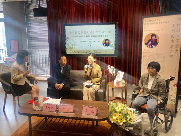 5月16日,經過兩年多的辛勤創作,青年殘障作家王憶攜首部長篇小說《冬日焰火》來到南京鳳凰書城,跟喜愛她的讀者進行了一場“云上之約”,并與江蘇鳳凰少年兒童出版社總編輯謝紅,江蘇省作協副主席、書記處書記、江蘇省文藝評論家協會主席汪政等嘉賓共同分享了創作背后的故事。