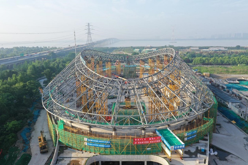 央廣網(wǎng)杭州5月27日消息(記者李佳 曹文君)記者今天從杭州亞組委了解到,位于杭州錢塘新區(qū)東部灣的亞運輪滑館項目,鋼結(jié)構(gòu)圍攏吊裝工程全部完成,場館輪廓初顯。