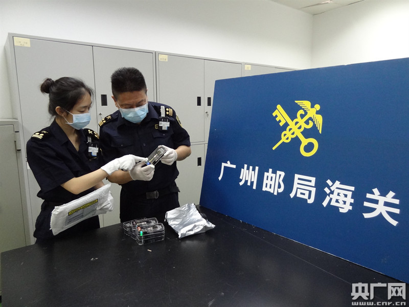 廣州海關所屬廣州郵局海關關員在進境郵件中查獲大麻油煙嘴(央廣網發 通訊員供圖) 央廣網廣州6月9日消息(記者鄭澍 通訊員關悅)據廣州海關6月9日消息,近日廣州海關在郵遞渠道查獲大麻油煙嘴9盒。這是該關在郵遞渠道運用“遠程集中審圖”模式查獲的首宗毒品案件。 今年年初,廣州海關聚焦疫情防控需要,改變以往郵檢現場海關關員需與郵政企業工作人員“面對面”接觸開展查驗模式,疊加運用高清視頻監控、信息比對、AI智能審圖和后臺專家集中研判等技術模式對部分郵件采取“遠程集中審圖”模式進行分析判別、實施精準查驗,查驗效率顯著提升。 5月22日,廣州海關所屬廣州郵局海關關員開展“遠程集中審圖”時,發現1件進境郵件過機圖像異常。現場關員開拆查驗發現郵包內混裝有9支棕黃色液體瓶,色澤氣味疑似大麻提煉的電子煙煙油。近日經相關部門鑒定確認,瓶內棕黃色液體含有四氫大麻酚違禁成分。