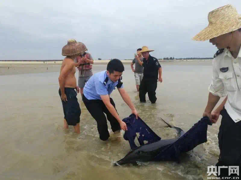 遂溪海洋綜合執(zhí)法人員救起擱淺海豚(央廣網(wǎng)發(fā) 通訊員供圖)