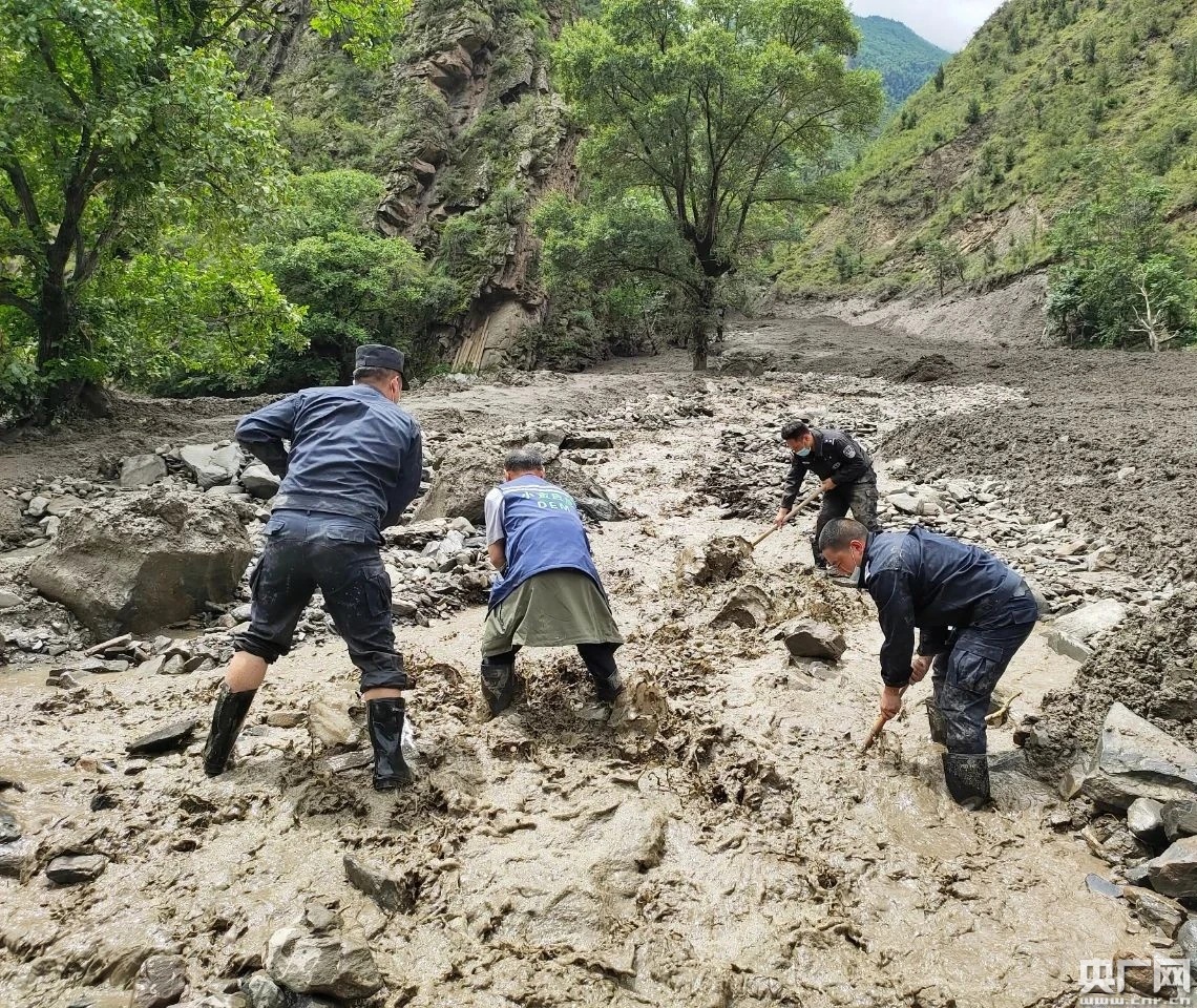 干部群眾正在搜救(央廣網發 小金縣供圖) 此次災害造成災害堆積體達50000余方,致使國道350(小金-丹巴)全部中斷,預計7月10日恢復通行;沖毀耕地50余畝,蘋果、核桃、花椒等經濟林木1300余株,國道沖毀200余米,電力、通信桿線沖毀20余根,車輛損毀3輛,經濟損失正在進一步核實中。