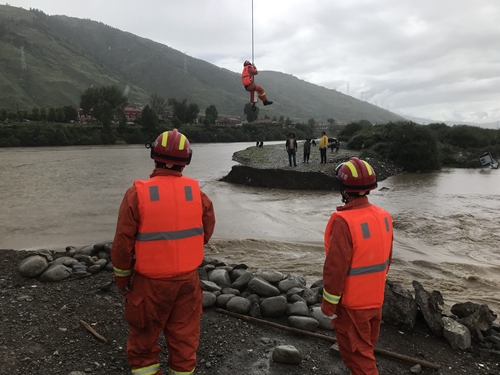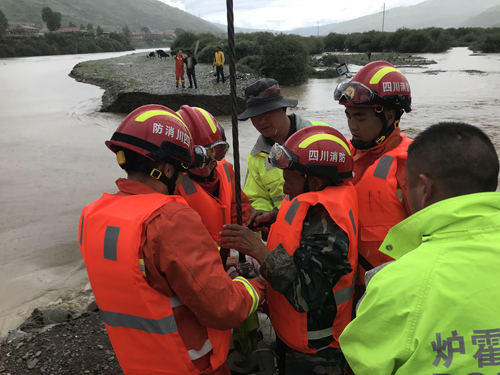 四川爐霍:河壩決堤3人被困孤島 消防員成功營救