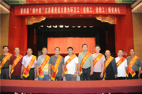 7月16日上午,江蘇省見義勇為基金會在南京舉行第四屆“綠葉獎”江蘇最美見義勇為環衛工(送報工、送奶工)頒獎典禮。對2018年7月以來全省“三工”群體中涌現出來的31名先進個人、7個先進群體,共46名見義勇為人員進行了集中表彰。