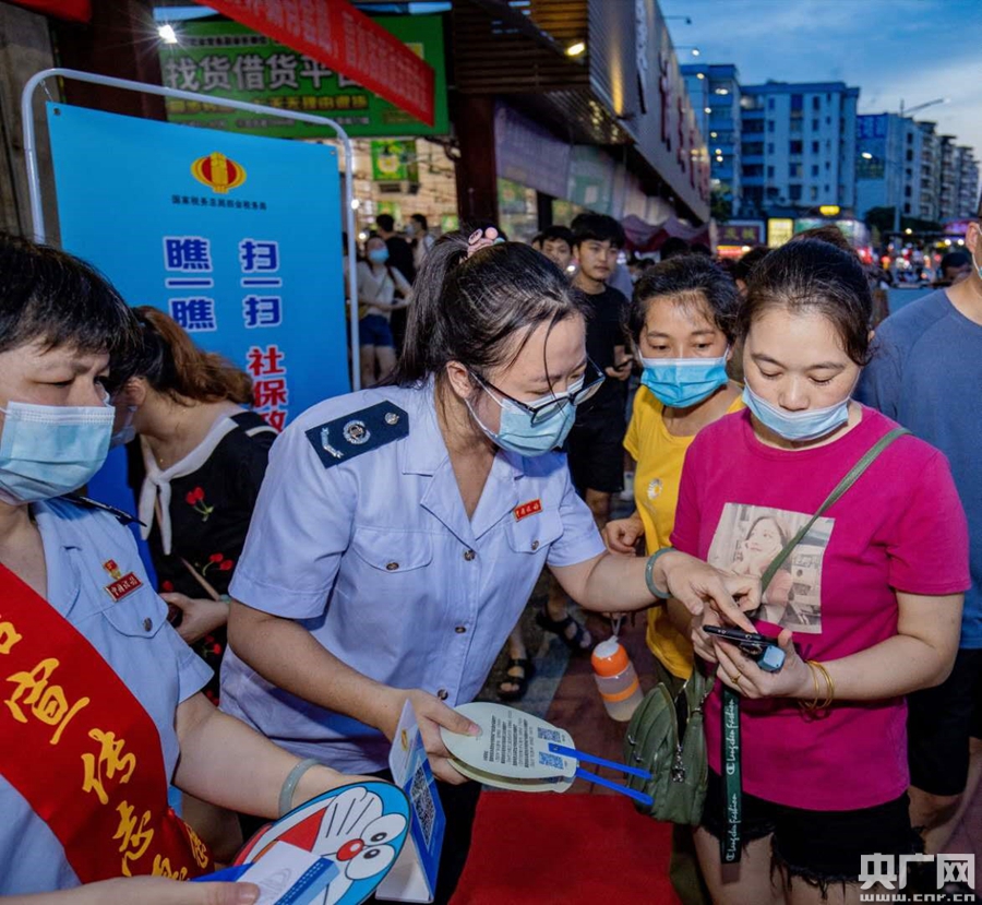 圖為肇慶稅務(wù)人員走進當(dāng)?shù)匾故袡n口,向群眾宣傳社保費政策(央廣網(wǎng)發(fā) 通訊員供圖)