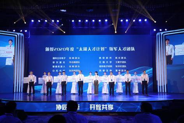 2020年度“太湖人才計劃”領軍人才團隊登臺領獎 開幕式上舉行了2020年度“太湖人才計劃”入選團隊表彰儀式,中國科學院院士、華中科技大學機械科學與工程學院院長丁漢、中國工程院院士、中車株洲所首席科學家丁榮軍、復旦大學附屬華山醫(yī)院感染科主任、上海市新冠肺炎醫(yī)療救治專家組組長、無錫市第五人民醫(yī)院感染科團隊帶頭人張文宏等各界頂級專家齊聚一堂,為無錫良好的人才發(fā)展生態(tài)作出了生動注解。2個產(chǎn)業(yè)校企合作聯(lián)盟、10個重大創(chuàng)新平臺揭牌;46個產(chǎn)學研合作項目現(xiàn)場簽約,推動了200余個科技人才項目來無錫洽談落地。 作為國內(nèi)外人才了解無錫、感知無錫的重要平臺,2020太湖人才峰會為期4天,將舉辦1場主題峰會、7個主體活動。