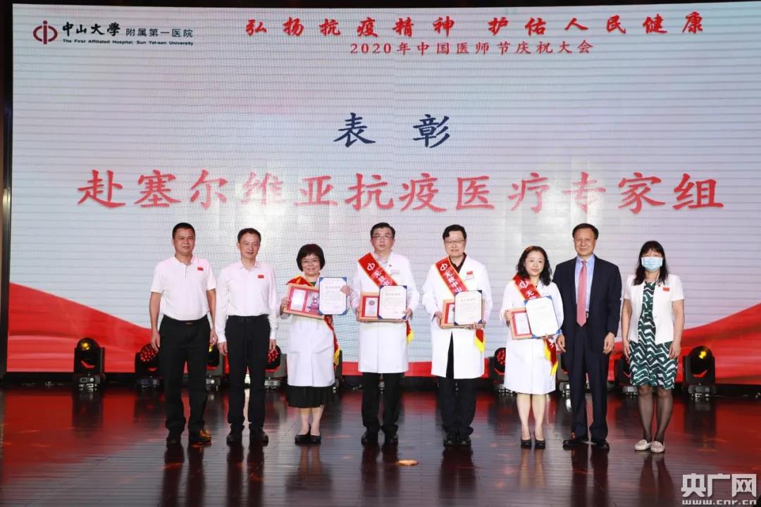 央廣網(wǎng)廣州8月20日消息(記者鄭澍)8月19日下午,第三個中國醫(yī)師節(jié),中山大學(xué)附屬第一醫(yī)院舉辦“弘揚抗疫精神,護佑人民健康”醫(yī)師節(jié)慶祝大會,向每一位醫(yī)師表達祝福和敬意。 △廣東省衛(wèi)生健康委主任、黨組書記段宇飛致辭(央廣網(wǎng)發(fā) 中山一院供圖) 廣東省衛(wèi)生健康委主任、黨組書記段宇飛出席大會并致辭。段宇飛表示,在今年抗擊新冠肺炎疫情的戰(zhàn)斗中,中山一院人不畏艱險、不辱使命,以醫(yī)病醫(yī)身醫(yī)心之仁術(shù),救人救國救世之情懷,身體力行地踐行了“人民至上、生命至上”的錚錚誓言,展現(xiàn)了新時代醫(yī)務(wù)工作者的良好形象、詮釋了新時期衛(wèi)生健康職業(yè)精神,出色完成了黨中央國務(wù)院和省委省政府交付的重任,譜寫了壯麗的篇章! 在這個屬于醫(yī)生的節(jié)日里,中華醫(yī)學(xué)會重癥醫(yī)學(xué)分會主任委員、中山一院重癥醫(yī)學(xué)科主任管向東教授,重癥醫(yī)學(xué)科司向醫(yī)生、張寧護士仍堅守在新疆抗疫一線,檢驗科郭鵬豪、余學(xué)高兩位隊員正在幫助香港開展抗疫工作,20多位醫(yī)療隊員在西藏、新疆和廣東封開、惠東開展對口幫扶。 △現(xiàn)場連線援疆抗疫隊員管向東、司向以及援邊壩縣人民醫(yī)院醫(yī)療隊員(央廣網(wǎng)發(fā) 中山一院供圖) 大會現(xiàn)場連線了援疆抗疫隊員管向東、司向以及援邊壩縣人民醫(yī)院醫(yī)療隊員。管向東說,從武漢到黑龍江再到新疆,感受到了國家的強大力量,表示將不辱使命、堅決完成任務(wù)。 △中國赴塞爾維亞抗疫醫(yī)療專家組受表彰(央廣網(wǎng)發(fā) 中山一院供圖) 面對人類的共同敵人新冠病毒,中山一院派出了2批5名專家作為中國赴塞爾維亞抗疫醫(yī)療專家組成員幫助塞爾維亞抗擊疫情,書寫了中塞鐵桿情誼的佳話。 大會揭曉了2019-2020年度中山一院好醫(yī)生名單,22位在抗擊新冠疫情、基層幫扶、醫(yī)教研工作中有突出貢獻的好醫(yī)生受到表彰,同時受表彰的還有獲得2020年“廣東醫(yī)師獎”的4位專家。 △中山一院好醫(yī)生受表彰(央廣網(wǎng)發(fā) 中山一院供圖) △2020年“廣東醫(yī)師獎”獲得者受表彰(央廣網(wǎng)發(fā) 中山一院供圖) △8月19日當天,在國際會議廳醫(yī)師節(jié)慶祝大會的會場外和五號樓廣場處,《弘揚抗疫精神,護佑人民健康——中山大學(xué)附屬第一醫(yī)院2020年抗擊新冠肺炎疫情圖片展》正式展出,200多張生動鮮活的圖片全方位展現(xiàn)了中山一院人英勇抗擊新冠肺炎疫情的歷程。(央廣網(wǎng)發(fā) 中山一院供圖) 再回首武漢抗疫斗爭第一線情形,什么是最難忘的?
