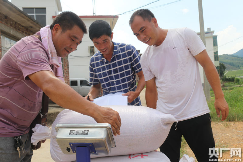 稻谷稱重(央廣網(wǎng)發(fā) 通訊員梁紫微 攝) 石溪村地理位置偏僻,位于江西與湖南兩省交界處,境內(nèi)山多地少,人均山林面積3.4畝,人均耕地面積僅0.38畝,基本農(nóng)田本就金貴,荒廢更是可惜。周漢君通過成片流轉(zhuǎn)、建高標(biāo)農(nóng)田讓“民棄田變豐收田”。這是很多人都沒想到的,也是很多人都感到高興的。不管今后是周漢君接著承包,還是村內(nèi)有其他青年有承包意愿,這300多畝農(nóng)田都將會綠油油、金燦燦的呈現(xiàn)在人們眼前。風(fēng)一吹就帶來幽香,眼一望就帶來希望。