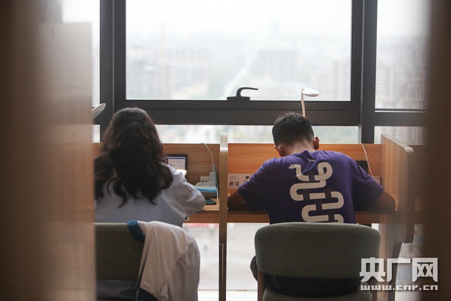 半封閉的格子間(央廣網(wǎng)記者 徐升 攝) 8月23日上午,寧夏銀川迎來(lái)一場(chǎng)大雨,氣溫驟降。早上9點(diǎn),位于銀川悅海新天地的滿分自習(xí)室里,已經(jīng)有人開(kāi)始了一天的自習(xí)。這家210平米的共享自習(xí)室分為學(xué)習(xí)區(qū)和公共區(qū),最多可容納67人同時(shí)自習(xí)。在學(xué)習(xí)區(qū),房間里光線柔和、溫度適宜,書(shū)桌被木板分隔成一個(gè)個(gè)小隔間。寫(xiě)作業(yè)、看網(wǎng)課、復(fù)習(xí)功課,自習(xí)者沉浸在其中,互不打擾。在濃厚的學(xué)習(xí)氛圍中,房間里發(fā)出的任何聲音都會(huì)顯得多余。