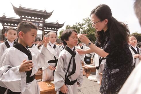 南京市夫子廟小學(xué)“開筆禮”儀式8月31日在夫子廟廣場舉行。(邵丹 攝)
