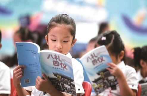 一年級新生拿到省編《“八禮四儀”養(yǎng)成教育讀本》,興趣盎然。(邵丹 攝) 9月1日,全省“四儀”教育示范觀摩活動7歲入學(xué)儀式專場在南京市金陵中學(xué)河西分校小學(xué)部舉行。 “四儀”是指以7歲、10歲、14歲、18歲為重要節(jié)點,分別舉行主題鮮明、寓意深刻的入學(xué)儀式、成長儀式、青春儀式和成人儀式,以此教育引導(dǎo)未成年人強化文明禮儀素養(yǎng)。 活動現(xiàn)場,金中河西分校學(xué)生代表給一年級新生送上寓意學(xué)!罢\真勤仁”校訓(xùn)的“大福袋”,并為一年級新生代表正衣冠,佩戴“出彩小精靈”徽章。一年級新生們拿到了省編《“八禮四儀”養(yǎng)成教育讀本》,孩子們以童謠歌舞的形式,表現(xiàn)文明禮儀基本規(guī)范,展現(xiàn)出青少年從小學(xué)禮儀、知禮儀、行禮儀,爭做新時代好少年的良好精神風(fēng)貌。 省文明辦負(fù)責(zé)同志表示,今后將進(jìn)一步健全完善“四儀”教育常態(tài)長效機制,廣泛開展內(nèi)涵豐富、莊重簡樸、形式多樣的儀式教育活動。 (吳雨陽) |