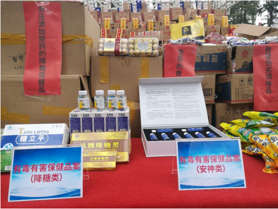 省暨南京主會場活動現(xiàn)場 在省暨南京主會場,江蘇省公安廳食藥環(huán)偵總隊和南京市公安局集中曝光了一批重大食品犯罪案件,現(xiàn)場展示了案件中查獲收繳待銷毀的假劣酒水飲料、調(diào)味品、零食、保健品、種子等涉案物品,并設(shè)立法律咨詢臺、發(fā)放宣傳手冊,廣泛宣傳法律政策。各地公安機關(guān)在當?shù)胤謺䦂鐾ㄟ^實物展示、案例曝光、現(xiàn)場咨詢等方式同步舉行了宣傳展示活動,通報了當?shù)卮驌羰称贩缸锕ぷ鞒尚,再次公布了舉報方式,廣泛發(fā)動群眾積極參與食品安全治理工作。省及各地市場監(jiān)管、農(nóng)業(yè)農(nóng)村等部門相關(guān)處室負責同志以及街道社區(qū)群眾、相關(guān)企業(yè)代表參加活動。全省集中開展宣傳展示活動,充分體現(xiàn)了全省公安機關(guān)打擊食品犯罪的堅強決心,切實提高了群眾的法律意識和辨識能力,有力促進了食品領(lǐng)域共建共治共享社會治理體系建設(shè)。 近年來,全省公安機關(guān)高度重視食品安全工作,積極構(gòu)建食品犯罪專業(yè)偵查體系,目前省市縣三級公安機關(guān)均成立了專門機構(gòu)并配備專業(yè)民警,成為打擊食品犯罪的中堅力量。今年以來,全省公安食藥環(huán)偵部門緊緊圍繞新冠肺炎疫情防控和“六穩(wěn)六!惫ぷ鞔缶郑e極會同市場監(jiān)管、農(nóng)業(yè)農(nóng)村等行政部門,以“昆侖2020”專項行動為載體,集中向各類食品犯罪發(fā)起凌厲攻勢。