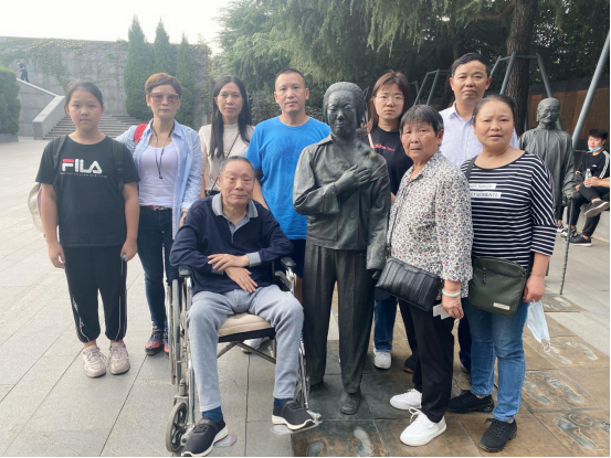項登仁帶著家人到紀念館參觀,緬懷姐姐。 10月3日,南京大屠殺幸存者岑洪桂和妹妹岑洪蘭,帶著家人一同到紀念館參觀,重溫歷史。經歷過戰爭苦難的岑洪桂如今已是四世同堂,過著幸福的晚年生活,他說歷史不能忘記,這次是特意帶孩子們來學習,接受愛國主義教育。(徐紅霞)