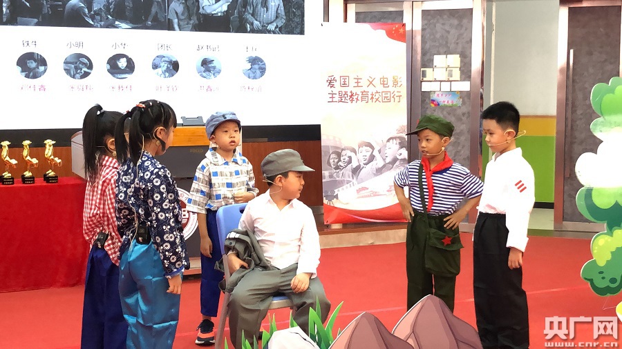 小學(xué)生們在演繹電影《英雄小八路》片段(央廣網(wǎng)發(fā) 通訊員供圖) 據(jù)了解,電影《英雄小八路》1961年上映,還原了廈門1958年“8.23”金門炮戰(zhàn)中涌現(xiàn)出的少年群體的英勇事跡。1978年10月,這部電影的主題歌《我們是共產(chǎn)主義接班人》被確定為中國少年先鋒隊(duì)隊(duì)歌。 “我覺得孩子們這種用情用心的表演特別讓人動(dòng)容。而且我覺得這種形式特別好,能夠讓現(xiàn)在的孩子們重新回顧紅色歷史,銘記光輝歷程,非常生動(dòng)、直觀地讓孩子們接受到這種紅色教育。”福建省廈門實(shí)驗(yàn)小學(xué)少先隊(duì)總輔導(dǎo)員陳嘯說。 活動(dòng)主辦方、廈門電視臺影視頻道工作人員張榕議告訴記者,通過運(yùn)用新穎的傳播形式和豐富的傳播內(nèi)容,引導(dǎo)同學(xué)們直觀形象地觸摸革命歷史,升華愛國思想,傳承紅色基因。不僅讓同學(xué)們了解金雞電影節(jié)的由來與發(fā)展歷程,聆聽金雞節(jié)與廈門的故事,還回顧愛國主義電影《英雄小八路》片段,共同學(xué)唱中國少年先鋒隊(duì)隊(duì)歌《我們是共產(chǎn)主義接班人》。