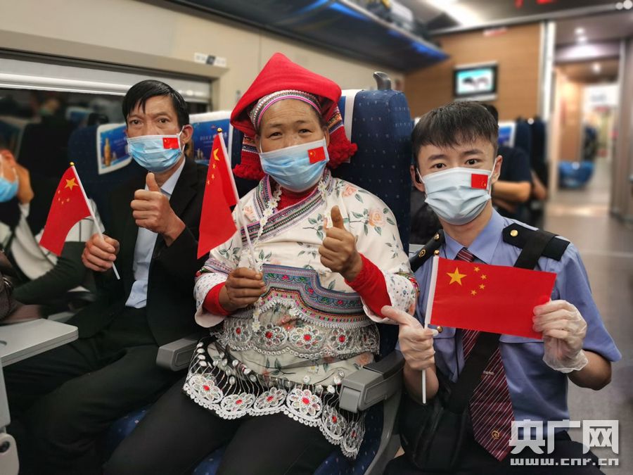 高鐵上的乘客與列車員(央廣網發 通訊員供圖) 在今年交通行業普遍受疫情影響,客流嚴重下滑的情況下,昆明局集團實施精準開車,用安全準時的運輸時效、優質服務持續改善旅客美好出行體驗,1-9月份云南高鐵動車的客流已恢復至去年同期的82.9%。 |