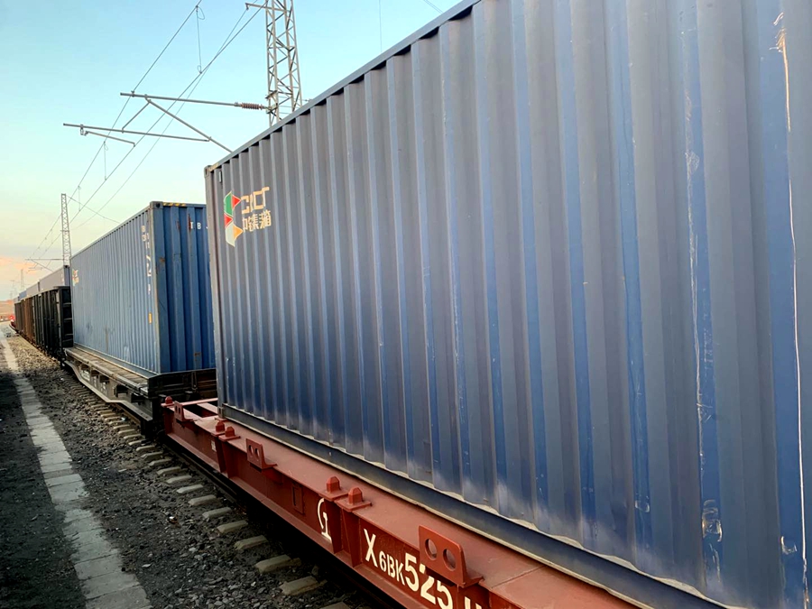 整裝待發的集裝箱(央廣網發 中國鐵路蘭州局集團有限公司銀川貨運中心提供)