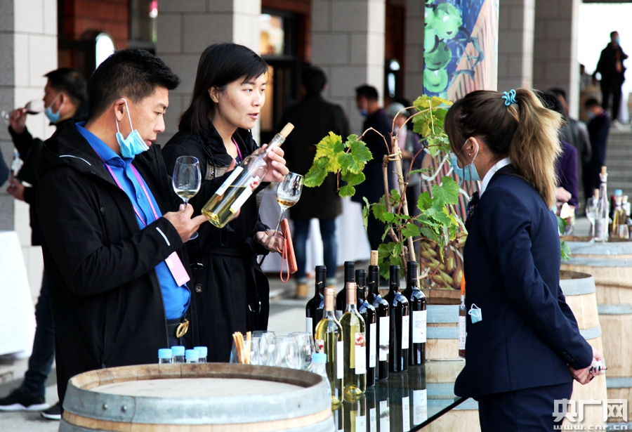 葡萄酒展銷活動(央廣網記者 胡鈺 攝) 寧夏賀蘭山東麓葡萄酒產區地理位置優越,日照充足,熱量豐富,土壤富含礦物質且透氣性好,灌溉便利,具有獨特的自然稟賦和特有風土條件,是世界公認的優質葡萄酒產區。寧夏回族自治區黨委書記陳潤兒在致辭中說:“寧夏現有釀酒葡萄種植面積占全國的1/4,是我國最大的釀酒葡萄集中連片區和酒莊酒產區,‘賀蘭山東麓葡萄酒產區’品牌價值近300億元,寧夏葡萄酒在各類國際國內大賽中聲名鵲起、大放異彩,產區影響力日益凸顯、產業帶動力持續放大、產品競爭力顯著增強,已經成為寧夏對話世界、世界認識寧夏的一張靚麗名片!
