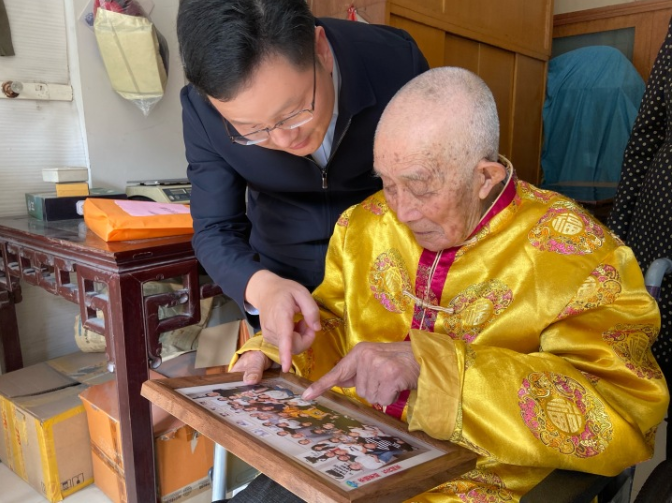 104歲的吳炳和老人(右)。