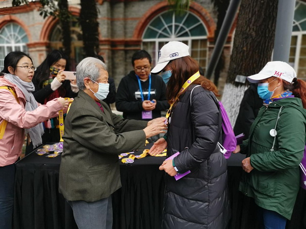 南京大屠殺幸存者艾義英為抵達終點的人頒發(fā)和平紀念牌 據(jù)侵華日軍南京大屠殺遇難同胞紀念館館長張建軍介紹,考慮到疫情防控的需要,今年線下徒步人數(shù)有所減少,但線上徒步的規(guī)模大幅增加。紀念館與咕咚APP共同發(fā)起了線上南京安全區(qū)國際和平徒步活動,全國有400個跑團參加。“我們每年都會舉行徒步安全區(qū)的活動,其核心就是感恩,南京人民始終沒有忘記幫助過我們的國際友人。不管是當年的國際友人,還是今年的援鄂醫(yī)護,他們都有一個共同的特質(zhì),就是人道主義精神。” 據(jù)悉,即日起至12月13日,任何感興趣的個人都可進入咕咚APP,參與“感恩·南京安全區(qū)”徒步尋訪活動,走完全程可解鎖點亮虛擬獎牌。(徐紅霞 楊升輝) |