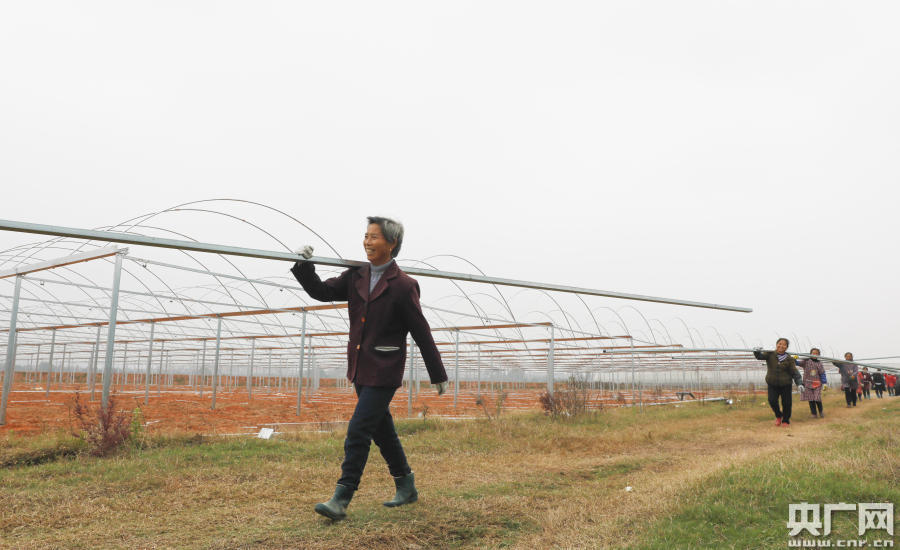 工人正在搭建大棚(央廣網(wǎng)發(fā) 通訊員供圖)