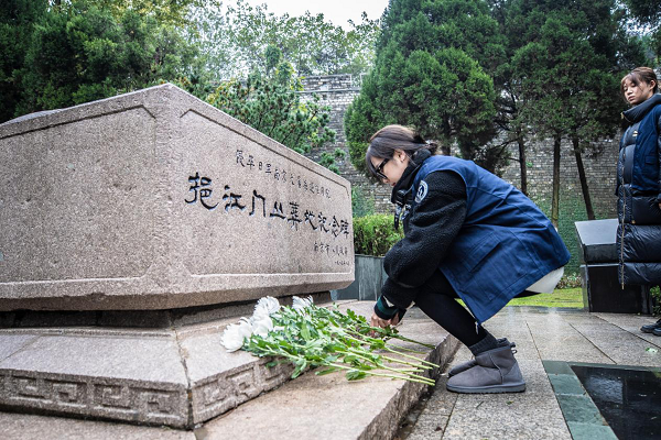 12月2日,“不可忘卻的記憶—南京大屠殺史實”閱讀尋訪行動(第四季)首場活動舉行,讀書會成員和市民代表共同閱讀《南京浩劫——被遺忘的大屠殺》一書,并走進挹江門叢葬地為長眠于此的遇難同胞獻花致哀。