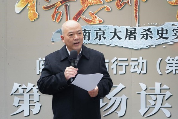 南京工程學院讀書會成員朗誦《拉貝的訴說》 87歲的南京大屠殺幸存者路洪才現場講述了自己和家人在南京大屠殺時期的經歷。路洪才說,當年他還是一個孩童,家住老門東,家里有10個人。雖然家人在日軍到來之前就挖好了地洞躲藏,但家中6人還是被殘忍殺害了。他說:“留給我們這些幸存者的時間所剩不多了,但這些慘痛的歷史一定要一代一代傳下去,我們一定要堅決反對戰爭,舉起和平的大旗,讓我們后人能夠代代在和平、和諧、平安的環境中成長。”