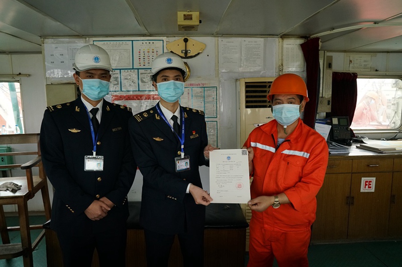“原來從提交審核申請到取得證書大概需要7個工作日的時間,沒想到現在我只需要在網上提交申請,當天就能安排審核,審核通過當場就可以拿到證書。我們的船早一天投入營運,就能節省更多成本,創造更多收益,我們很滿意。”“嘉泰299”輪所屬公司總經理江國良說。