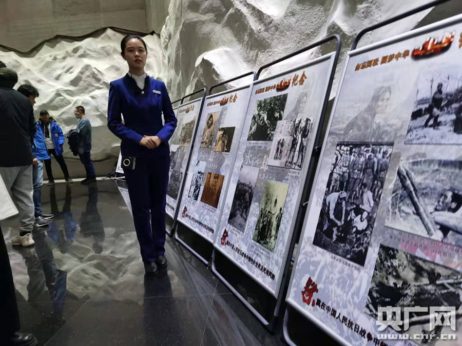 全場人員列隊依次在臥碑前敬獻蠟燭( 攝影張靜) 儀式結(jié)束后,人們參觀了《紀念南京大屠殺被害同胞遇難83周年圖片展》,觀看小志愿者表演的抗戰(zhàn)歷史互動劇《黑土英魂》。另外,今天“九·一八”歷史博物館官方微信平臺也同步舉行祭奠活動。 ![]() 工作人員講解展出圖片(央廣網(wǎng)記者 張靜 攝) |