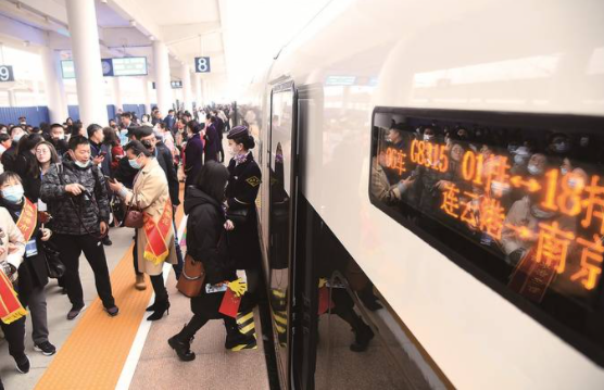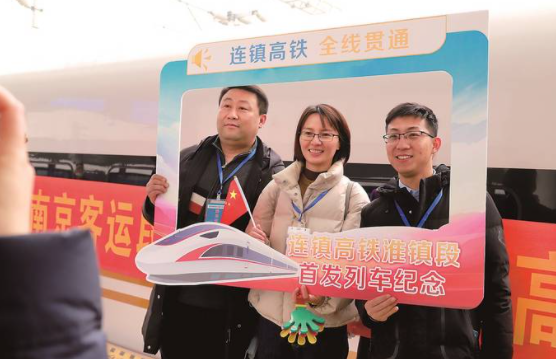11日,連云港首發(fā)至南京的G8315次高鐵列車整裝待發(fā)。 12月11日上午10時(shí),首趟高鐵G8301次列車從揚(yáng)州東站駛出,開往上海虹橋,標(biāo)志著連淮揚(yáng)鎮(zhèn)鐵路淮鎮(zhèn)段正式通車。自此,擁有江蘇高速鐵路網(wǎng)“脊梁”之喻的連淮揚(yáng)鎮(zhèn)鐵路,實(shí)現(xiàn)全線貫通運(yùn)營。 滿載期待 迎來全線開通 “期待已久,恭喜家鄉(xiāng)喜提高鐵。”來自高郵的田聰大學(xué)畢業(yè)后在南京工作,10日下午6點(diǎn),連淮揚(yáng)鎮(zhèn)鐵路開始售票,他立刻買下開通首日的C3669次列車車票,在朋友圈里興奮地分享,“晚上6點(diǎn)18分從南京出發(fā),7點(diǎn)半前就能趕到高郵吃晚飯”。 “看到乘客們喜氣洋洋登車,我也跟著高興!”中國鐵路上海局集團(tuán)南京東機(jī)務(wù)段高鐵司機(jī)殷學(xué)斌,被安排駕駛揚(yáng)州東站首發(fā)G8301次列車,他此前一直承擔(dān)連淮揚(yáng)鎮(zhèn)鐵路聯(lián)調(diào)聯(lián)試及試運(yùn)行等任務(wù)。“駕駛高鐵滿載旅客奔馳在江蘇大地上,看著沿線風(fēng)景日新月異,感受到高鐵給大家出行帶來的便捷舒適,倍感欣慰,期望江蘇高鐵線路越來越長、越開越多!” 連淮揚(yáng)鎮(zhèn)鐵路淮鎮(zhèn)段2014年12月28日開工建設(shè),其間項(xiàng)目始終安全優(yōu)質(zhì)穩(wěn)步推進(jìn)。“特別是今年以來,克服疫情影響,優(yōu)化施工組織,加快推進(jìn)建設(shè),確保了項(xiàng)目如期建成。”中國鐵路上海局集團(tuán)有限公司黨委宣傳部部長陳萬鈞說。 回望連鎮(zhèn)鐵路建設(shè)歷程,背后是高鐵建設(shè)者的披星戴月、攻堅(jiān)克難。“我們參建包括正線、京滬改線丹徒段和鎮(zhèn)江段、鎮(zhèn)江聯(lián)絡(luò)線等路段,施工涉及京滬鐵路、滬寧城際、京滬高鐵等5條既有線和丹徒站、鎮(zhèn)江站兩座城際站場,歷時(shí)1916個(gè)日夜,一路風(fēng)雨兼程,如期保證了通車。”中鐵二十四局集團(tuán)連鎮(zhèn)鐵路8標(biāo)三分部黨支部書記吳凡說。 “我們主要承擔(dān)五峰山大橋北主塔施工任務(wù),看到列車平穩(wěn)通過,心里百感交集。”中交二航局連鎮(zhèn)鐵路項(xiàng)目部一分部項(xiàng)目經(jīng)理方龍感嘆,“2015年10月進(jìn)場施工到現(xiàn)在,我最擔(dān)心的就是北錨碇沉井的沉降,因?yàn)樗鞘澜缟献畲蟮某辆罱K達(dá)到了評(píng)估標(biāo)準(zhǔn)。5年時(shí)間,3年沒回家過年,今年可以安安心心回家過年了。” 擁抱高鐵 運(yùn)河城市蝶變 曾經(jīng),大運(yùn)河流經(jīng)的淮安、揚(yáng)州、鎮(zhèn)江,都靠運(yùn)河實(shí)現(xiàn)興旺。隨著經(jīng)濟(jì)發(fā)展和交通工具的變化,旱路交通便利,水運(yùn)日漸蕭條。尤其受制于長江天塹阻隔,淮安、揚(yáng)州等地區(qū)人才、技術(shù)、資本等要素流動(dòng)長期受限。 連淮揚(yáng)鎮(zhèn)鐵路開通運(yùn)營,將連云港、淮安、揚(yáng)州、鎮(zhèn)江部分地區(qū)接入全國高速鐵路網(wǎng)。淮安、揚(yáng)州、鎮(zhèn)江、常州、無錫、蘇州等城市,在大運(yùn)河之外又有了新的貫通紐帶,時(shí)空距離進(jìn)一步縮短。 揚(yáng)州市交通運(yùn)輸局副局長印德明表示,歷史上揚(yáng)州的交通優(yōu)勢在于地處長江與運(yùn)河交界口,而未來,飛馳的高鐵將促使運(yùn)河城市蝶變。 “連淮揚(yáng)鎮(zhèn)鐵路開通的重要性,不亞于當(dāng)年的京杭大運(yùn)河通航,能夠從根本上改變揚(yáng)州的經(jīng)濟(jì)地理格局。”揚(yáng)州大學(xué)建筑與工程學(xué)院副院長鄧社軍說,連淮揚(yáng)鎮(zhèn)鐵路和寧啟鐵路在揚(yáng)州十字交會(huì),通車后發(fā)揮承南啟北、橫貫東西的樞紐作用。 連淮揚(yáng)鎮(zhèn)鐵路的開通相當(dāng)于在蘇北蘇南城市間實(shí)現(xiàn)“高鐵公交化”。“密集的站點(diǎn)設(shè)計(jì),高鐵公交化出行方式,將有效促進(jìn)沿線居民流動(dòng)。”淮安市鐵路辦主任趙知春說,連淮揚(yáng)鎮(zhèn)鐵路和徐宿淮鹽鐵路形成十字交叉模式,使淮安的樞紐地位得以鞏固和提升,全面從運(yùn)河時(shí)代邁向高鐵時(shí)代。 “連淮揚(yáng)鎮(zhèn)鐵路是鎮(zhèn)江高鐵‘十字’樞紐的重要‘一豎’,東西向的滬寧鐵路與南北向的連鎮(zhèn)鐵路兩條國家鐵路大動(dòng)脈在鎮(zhèn)江交匯,鎮(zhèn)江高鐵總里程自此在全省名列前茅。”鎮(zhèn)江市綜合交通事業(yè)發(fā)展中心副主任黃曄表示。 “以前有客商到揚(yáng)州考察,往往需要我們跨江接送;今后,由南到北,客戶通過高鐵直達(dá)揚(yáng)州,我們對(duì)未來對(duì)發(fā)展充滿信心!”揚(yáng)州倍加潔集團(tuán)董事長張文生感慨。 華設(shè)設(shè)計(jì)集團(tuán)綜合規(guī)劃院副院長裴劍平表示,高鐵與運(yùn)河在物流方面是互補(bǔ)關(guān)系,“我們正在做規(guī)劃研究,要在江蘇建一批高鐵快運(yùn)中心,未來實(shí)現(xiàn)更快速的快遞運(yùn)輸”。 密植路網(wǎng) 擴(kuò)大“朋友圈” 連淮揚(yáng)鎮(zhèn)鐵路開通,揚(yáng)州東到上海虹橋最快只需1小時(shí)51分;淮安東到南京最快只需1小時(shí)42分,到上海虹橋不到3小時(shí);連云港3小時(shí)內(nèi)直達(dá)南京。 “連淮揚(yáng)鎮(zhèn)鐵路具有的京滬高鐵輔助通道重要功能會(huì)逐步呈現(xiàn),給區(qū)域出行結(jié)構(gòu)帶來質(zhì)的變化,北上南下,通京達(dá)滬,南京對(duì