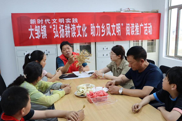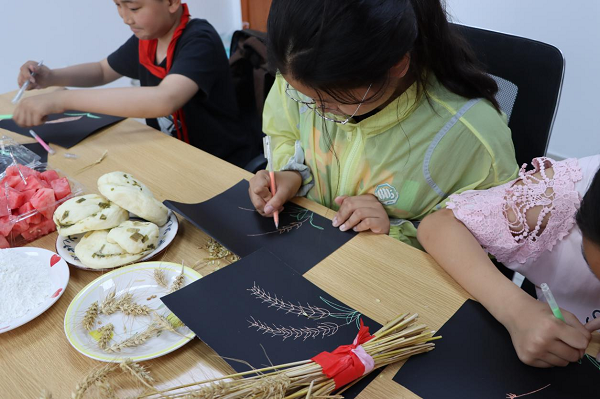 田野間,機聲隆隆,三夏正忙;農家書屋里,麥香濃濃,學習正酣……日前,一場別開生面的農耕文化閱讀推廣活動在江蘇泰州興化市大鄒鎮(zhèn)渭水村農家書屋舉行。活動以“麥穗香里享‘悅’讀 農耕文化潤童心”為主題,通過青少年農業(yè)科普書籍共讀和DIY手工立體畫創(chuàng)作等活動,激發(fā)孩子們對農耕文化的興趣,引導他們熱愛農耕文化,增加愛國主義情懷。 一粒種子如何在泥土里破土生長?一株麥穗能結出多少顆麥粒?種下的麥子怎么長成一片麥田?麥粒怎樣變成白白的面粉?帶著種種疑問和滿心的好奇,參加活動的孩子們與新時代文明實踐所的志愿者們一起“走進”書本,學習《快樂學農季》中的《勇?lián)溙锸赝摺罚钊胩骄葵溋5?ldquo;生命史”。 隨后,孩子們化身植物保護小能手,學習探討小麥易遭受哪些蟲害,這些害蟲的天敵有哪些,農家書屋里洋溢著陣陣書香。這彌足珍貴的一課,讓孩子們看見了農民伯伯在小麥種植方面所展現(xiàn)出來的智慧,也更加明白了愛惜糧食的重要性。 “讓我們一起來動手,親自將麥粒碾開,看看它里面是什么模樣。”在志愿者的指導下,小朋友們自己動手,將麥穗上的麥粒凈化、脫殼,體驗勞動的快樂,享受豐收的喜悅。“脫殼后的麥粒可以磨成粉,再用來制成面條、饅頭、面包等。”聆聽麥粒的每一步的變化,小朋友們詳細觀察了麥穗的組成部分,加深了對農業(yè)的了解。 一張黑色卡紙,一堆麥秸稈,一把剪刀,一瓶膠水……一幅幅立體畫作品《金黃的麥穗》在小朋友的手中精彩呈現(xiàn)。圖畫上,麥秸稈被細心地進行了裁剪,宛若一個個少女,在隨風翩翩起舞。隔著一幅幅作品,讓人仿佛能看到金燦燦一望無垠的麥田,聞到一顆顆麥穗的香味,從中體會了農耕文化之美…… |
