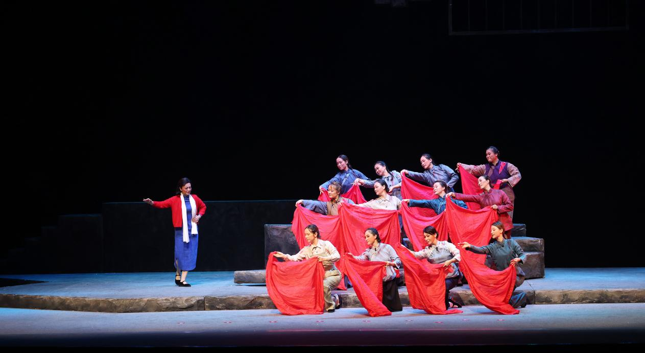 靖江是一座紅色底蘊濃厚、文藝氣息濃郁的濱江城市,也是渡江戰役“東線第一帆”升起的地方,作為吳越文化傳承載體的錫劇在此深深扎根,廣受靖江人民的喜愛。錫劇《江姐》是江蘇藝術基金2022年度資助項目,創排《江姐》也是靖江市推動黨史學習教育常態長效,廣泛開展“強國復興有我”群眾性主題教育活動的一項重要內容。 該劇取材于革命英雄江竹筠的光輝事跡,采用錫劇的藝術形式進行了重新改編,并在戲劇結構、人物關系、舞臺呈現等方面進行了突破性創新嘗試。全劇分為送別、朝天門、江姐上山、劫軍火、彭松濤就義、江姐被捕、審訊、繡紅旗等八折,生動再現了江姐浴血奮戰的光輝歷程。 紅梅花下,江姐與彭松濤依依惜別;朝天門碼頭,江姐機智地擺脫特務搜查,突破重重封鎖;華鎣山上,江姐帶領游擊隊智劫敵人軍火;城樓下,江姐大義阻止戰友的盲目營救,親眼目睹彭松濤慷慨赴死;渣滓洞內,江姐痛斥甫志高的叛徒行徑……一幕幕、一聲聲,將革命志士對黨絕對忠誠的政治定力,敢于善于斗爭的使命擔當、功成不必在我的無私奉獻和以天下為己任的家國情懷展現得淋漓盡致,也在觀眾心中激蕩起愛黨愛國的深情。