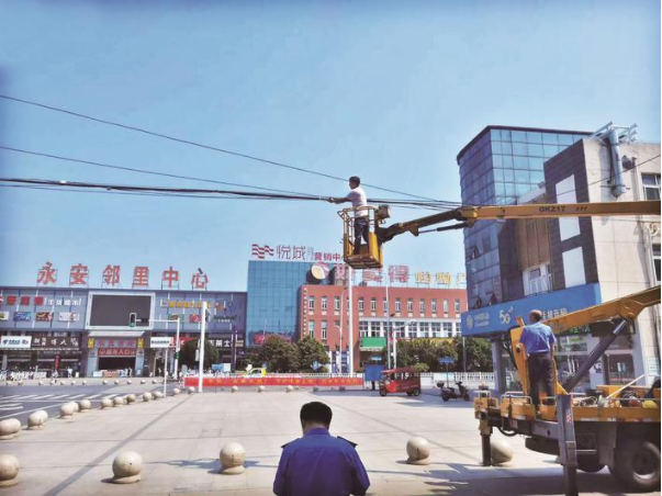 “一二三,收線!”,隨著吊車升降機上施工人員的“最后一剪”落下,泰州市姜堰區(qū)廣福園小區(qū)飛線整治工作宣布收官,這預(yù)示著該區(qū)農(nóng)貿(mào)市場周邊41個小區(qū)飛線整治取得階段性成效。