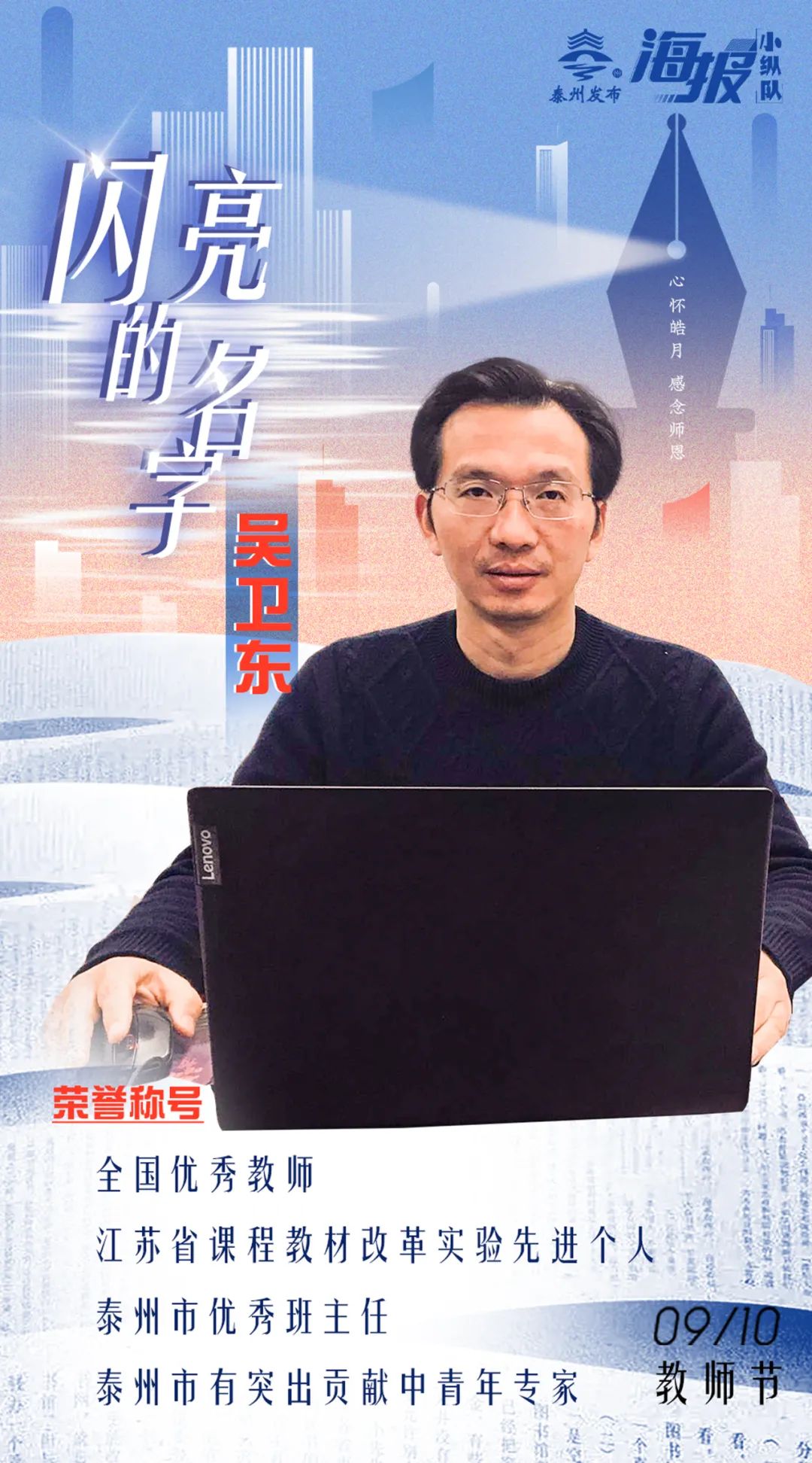 現為江蘇省泰興中學副校長。用情關愛學生,做有溫度的教育,是吳衛東一直以來的教學理念。他熱愛教育、熱愛學生,用真情去看待對待每一位學生,正因此,觸動了學生們內心最柔軟之處,才有了他這充滿溫情、溫暖、溫度的教育之路。“吳老師的數學課,改變了傳統授課的枯燥、繁瑣和死板的狀態,他的課堂充滿了探索情趣。學生上課時非常有積極性,成績也提高了不少。”這是吳老師的一位學生對他課堂的評價。“一個人可以走得很快,但一群人才可以走得更遠。”這是他在班級管理中經常說的一句話。在他的帶領下,班里同學們互幫互助、同心同德,共同塑造了良好的班風。