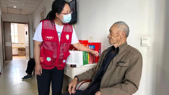 “這里環境好,飯菜也好吃,還有人聊天,蠻好的!”泰州市海陵區城西街道運河社區黨總支書記、居委會主任金娟帶著禮物來到泰州市祥和社會福利院看望住在這里的社區居民老陳(化名)。
